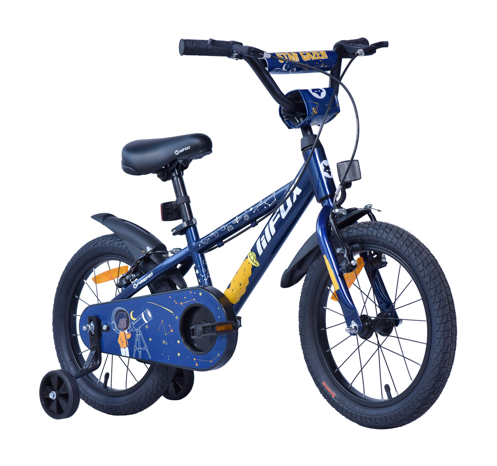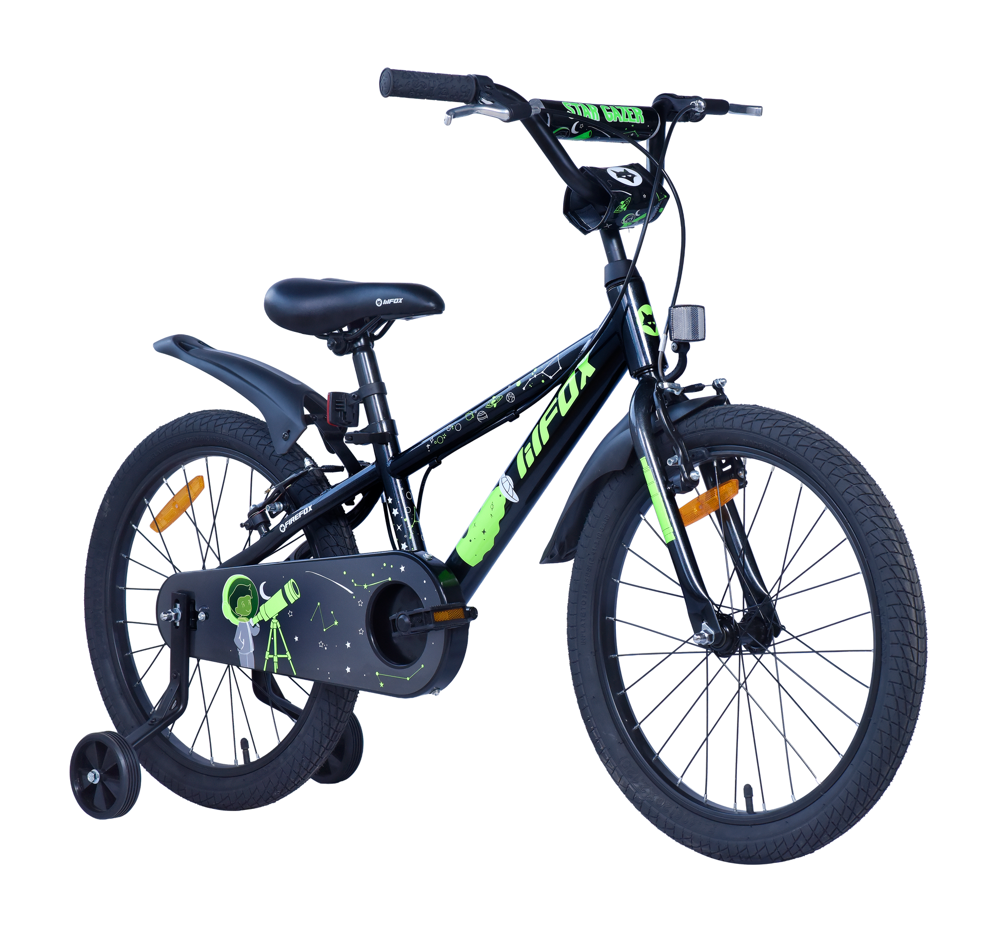 *Saddle with seat post, *Sturdy Training Wheels, *Fender Mudguard BOX FOR ACCESSORIES, *Firefox Platform Pedal, *Handle reflector, *Seat pillar reflector, *Warrenty card *SPANNER UNIVERSAL, *ALLEN KEY, *Stem Cap